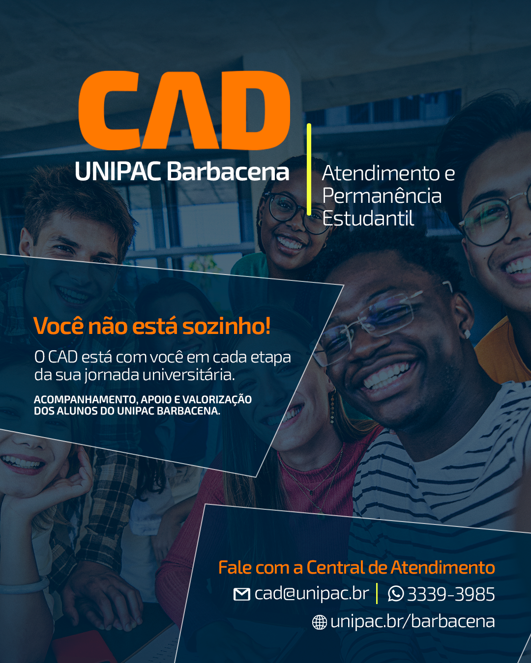 A Central de Acompanhamento ao Discente (CAD) é o setor responsável por acompanhar, de forma contínua e estratégica, a trajetória acadêmica dos estudantes da FUPAC UNIPAC. O CAD atua no monitoramento de indicadores acadêmicos, como frequência, rendimento e situação financeira, promovendo ações preventivas que contribuem para a permanência do aluno e para uma experiência universitária mais organizada, eficiente e alinhada às políticas institucionais.