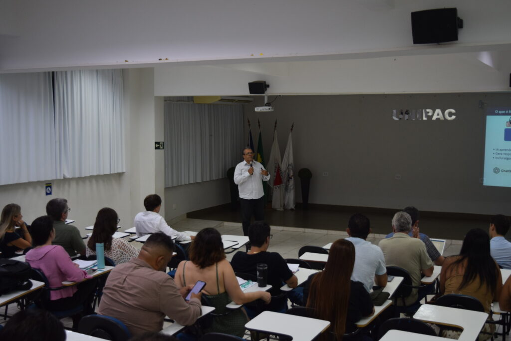 Com o tema “A Inteligência Artificial como aliada do professor”, a palestra destacou como as ferramentas de IA podem auxiliar os docentes na produção de materiais didáticos, organização de conteúdo, geração de ideias e realização de pesquisas, contribuindo para otimizar o tempo e enriquecer as práticas pedagógicas, sempre de forma ética e responsável.